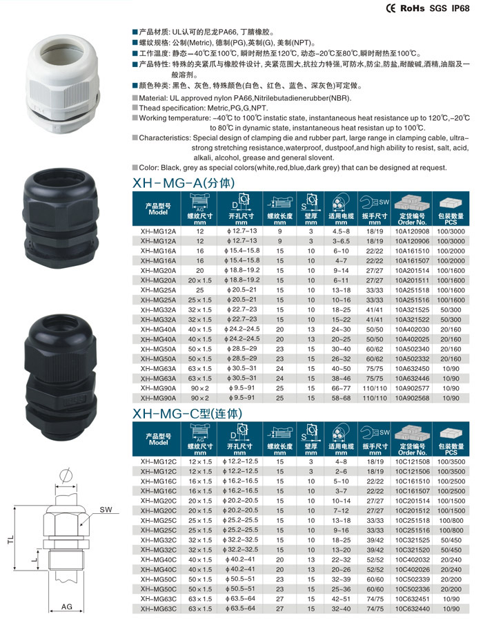 產(chǎn)品材質(zhì):UL認(rèn)可的尼龍PA66,丁腈橡膠